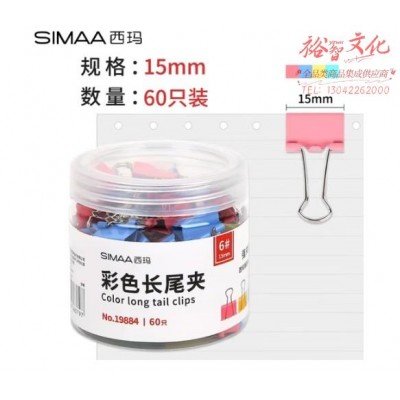 西玛(SIMAA)60只彩色长尾夹票夹15mm 燕尾夹办公用品19884SKU:yzwhyp854318