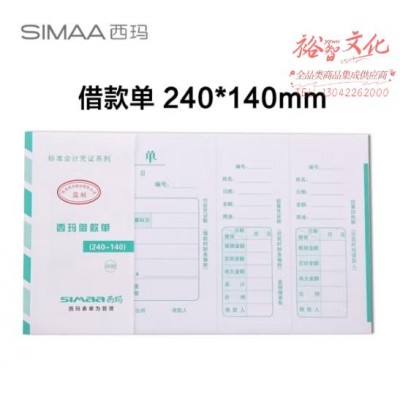 首页 > 办公用品 > 文具 > 西玛(SIMAA)借款单240*140mm 50页/本10本/包 付款审批粘贴报销单据财务专用通用会计记账凭证纸SKU:yzwhyp854321