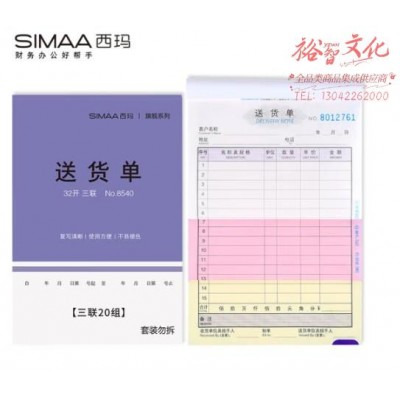 首页 > 办公用品 > 文具 > 西玛(SIMAA)旗舰紫三联送货单 32k 130*190mm 20组10本装 销货清单销售出货出库无碳复写单据 8540SKU:yzwhyp854326
