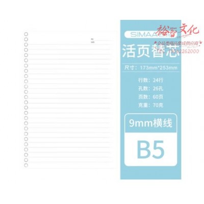 西玛(SIMAA) B5/60张活页本替芯笔记本子通用替芯 26孔横线格式优选TXB560-1SKU:yzwhyp854395