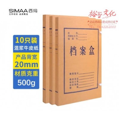 西玛(SIMAA)牛皮纸档案盒 10只20mm混浆牛皮纸500g 加厚文件盒档案盒 财务凭证盒 办公用品 20076SKU:yzwhyp854510