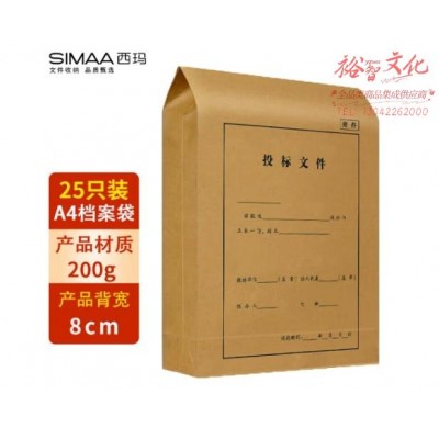 西玛(SIMAA)25只投标专用 A4进口木浆 200g档案袋文件袋资料袋 侧宽8cm 6836SKU:yzwhyp854518