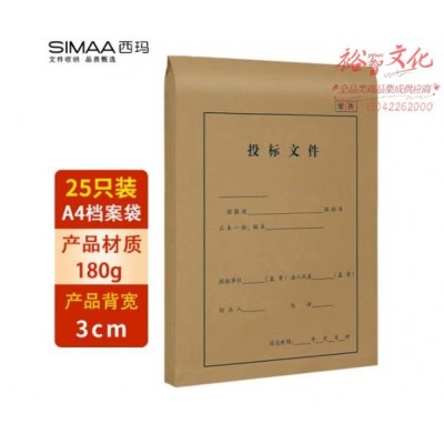 西玛(SIMAA)25只投标专用 A4进口木浆180g档案袋文件袋资料袋 侧宽3cm 6834SKU:yzwhyp854520