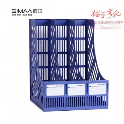 西玛(SIMAA)三联镂空桌面文件框 三栏带标签稳固文件架/文件栏/文件筐/资料框 办公用品 商务蓝 6896SKU:yzwhyp854527