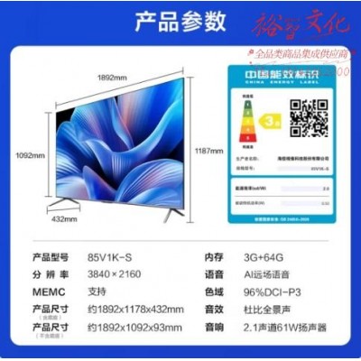 首页 > 广播、电视、电影设备 > 电视设备 > 普通电视设备(电视机) > Vidda 海信电视 85V1K-S 85英寸 120Hz高刷 3 64G 游戏电视 4K超高清 超薄全面屏 智能巨幕电视SKU:yzwhyp854533