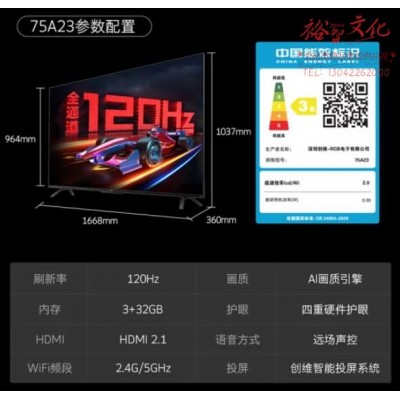 首页 > 广播、电视、电影设备 > 组合音像设备 > 音视频播放设备 > 创维电视75A23 75英寸电视全通道120Hz 3 32G4K超高清护眼声控全面屏智能液晶SKU:yzwhyp854991