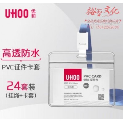 优和(UHOO)工作牌防水PVC证件卡套 24个卡套 24根挂绳 横式 透明 工作证员工牌胸卡出入证 6655-5灰蓝挂绳SKU:yzwhyp855086