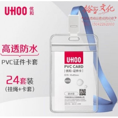 优和(UHOO)工作牌防水PVC证件卡套 24个卡套 24根挂绳 竖式 透明 工作证员工牌胸卡出入证 6656-5灰蓝挂绳SKU:yzwhyp855089
