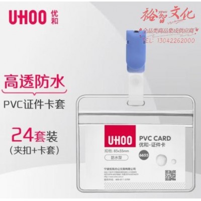 优和(UHOO)防水PVC证件卡套 横式 透明 24个卡套 24个夹扣 工作牌员工牌胸卡 6655-6灰蓝夹扣SKU:yzwhyp855097