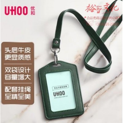 优和(UHOO)真皮卡套头层牛皮商务证件卡套横式1个卡套配送真皮挂绳员工胸牌工牌厂牌工作证墨绿6874SKU:yzwhyp855104