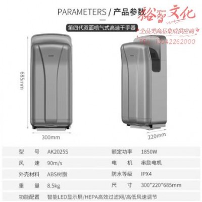 艾克(AIKE)双面烘手机全自动感应高速干手器卫生间壁挂式干手机烘手器 【AK2025S银】5秒干手/HEPA滤网SKU:yzwhyp855262