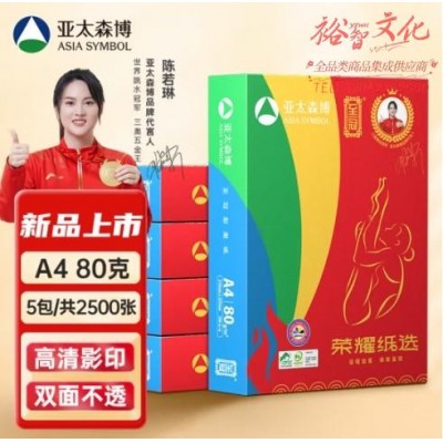 首页 > 办公用品 > 文具 > 亚太森博至冠A4打印纸 80g500张*5包一箱 办公用纸 高清影印 双面不透印 整箱2500张【高端新春款】SKU:yzwhyp856198