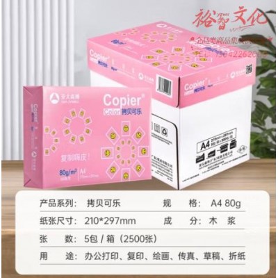 首页 > 办公用品 > 文具 > 亚太森博拷贝可乐A4打印纸 80g 500张*5包 双面打印不透印 字迹清晰 整箱2500张SKU:yzwhyp856223
