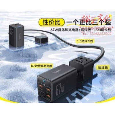 倍思 氮化镓67W充电器笔记本快充插排/插线板/插座/接线板/拖线板/多功能带线便携桌面充电站SKU:yzwhyp856265