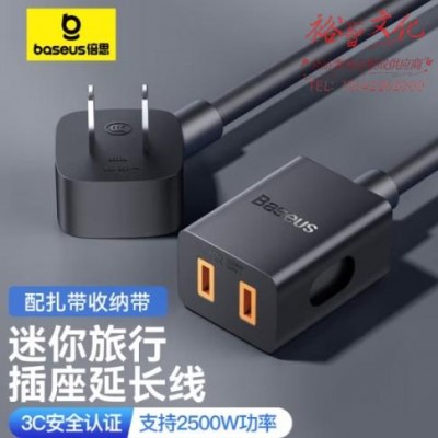 倍思 迷你旅行充电器延长线二插孔主机电源线适用于手机笔记本吹风机电风扇电动车电视机加长插头插座1米SKU:yzwhyp856276