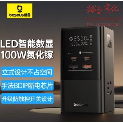 倍思(Baseus)100W智能数显插线板电竞插座 笔记本氮化镓快充智能插座/排插/多功能桌面充电站 3AC 2U 2C 星曜黑SKU:yzwhyp856280