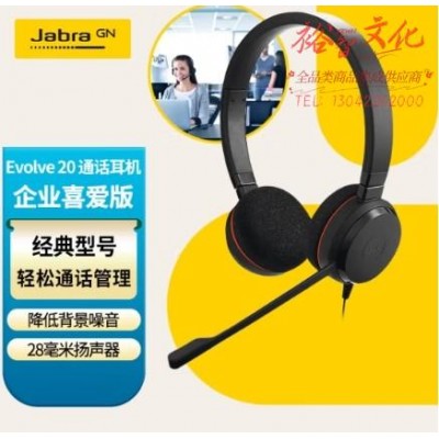 捷波朗(Jabra)电脑办公会议话务员客服电销专用耳麦在线教育头戴式降噪双耳机Evolve 20 UC USBSKU:yzwhyp856827