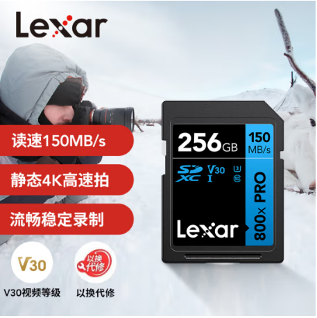 雷克沙(Lexar)256GB SD存储卡 读150MB/s U3 V30 高速性能 相机随心畅拍(800x PRO)SKU:yzwhyp856867