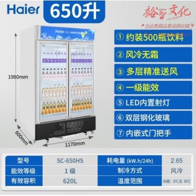 海尔展示柜商用650升风冷无霜双开门一级能效立式冷藏保鲜陈列柜冰柜展示饮料柜SC-650HSSKU:yzwhyp856951