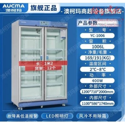 首页 > 机械设备 > 冷藏箱柜 > 澳柯玛(AUCMA) 冰箱冷藏箱2-8℃生物立式疫苗药品冰柜带锁阴凉药店恒温箱展示柜药品阴凉柜 YC-1006电子控温2-8℃1006升SKU:yzwhyp856967
