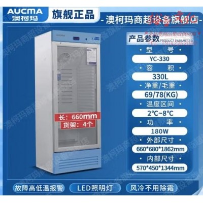 首页 > 机械设备 > 冷藏箱柜 > 澳柯玛(AUCMA) 冰箱冷藏箱2-8℃生物立式疫苗药品冰柜带锁阴凉药店恒温箱展示柜药品阴凉柜 YC-330电子控温2-8℃330升SKU:yzwhyp856973