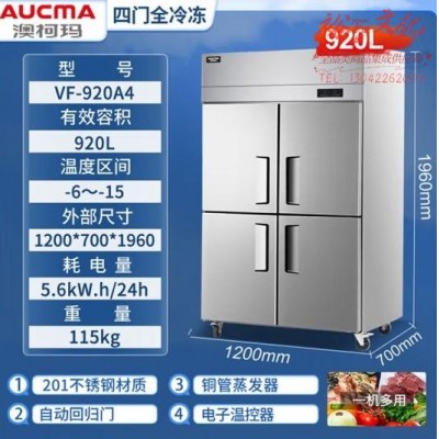 澳柯玛(AUCMA)商用冰柜立式冷柜大容量饭店厨房设备餐饮店后厨不锈钢厨房冰箱四开门保鲜柜 VF-920A4(四门全冷冻)SKU:yzwhyp857042