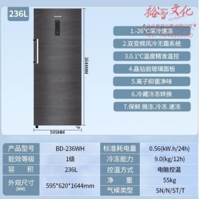 澳柯玛(AUCMA)冰箱风冷无霜一级能效立式冷冻冰柜侧开门家用商用母婴母乳风冷立柜 【236L星际岩】风冷无霜钢制面板SKU:yzwhyp857055