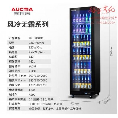 澳柯玛(AUCMA)400升单门啤酒柜 风冷无霜展示柜 商用全面屏冰柜 冷藏冰箱 LSC-400HWSKU:yzwhyp857093