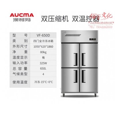 澳柯玛(AUCMA)四门厨房冰箱商用冰柜立式不锈钢酒店后厨大容量餐饮食堂单温陈列柜 精选铜管 全冷冻 VF-650DSKU:yzwhyp857109