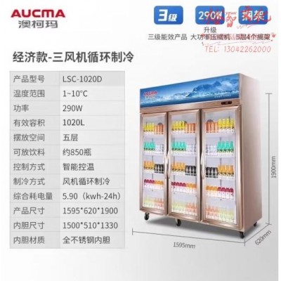 澳柯玛(AUCMA)立式冷藏展示柜冰柜 三门保鲜柜冷柜商用冰箱 风直冷超市饮料陈列柜 LSC-1020DSKU:yzwhyp857114
