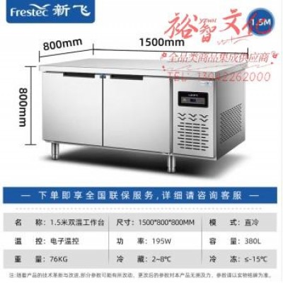 新飞(Frestec)商用冷藏冷冻双温保鲜工作台奶茶店水吧台操作台厨房冷藏冰柜铜管双温款WZC-1580CDHXESKU:yzwhyp857231