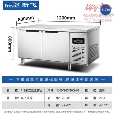 首页 > 机械设备 > 冷藏箱柜 > 新飞(Frestec)商用冷藏冷冻双温保鲜工作台奶茶店水吧台操作台厨房冷藏冰柜 【长1.2M-宽0.8M】铜管双温款WZC-1280CDHXESKU:yzwhyp857240