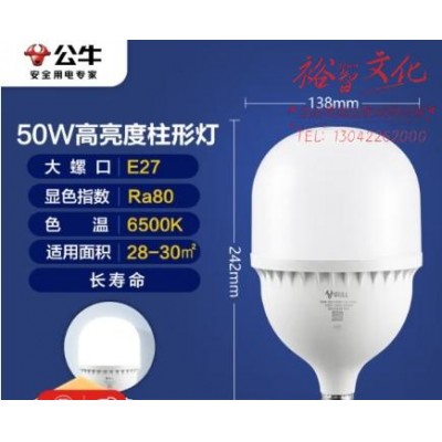 公牛(BULL)LED灯泡高亮球泡柱形灯厂房车间商超食堂50W球泡白光6500KE27螺口SKU:yzwhyp857420