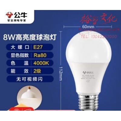 公牛(BULL)LED灯泡E27大螺口球泡灯高亮度 8W冷白光4000KSKU:yzwhyp857429