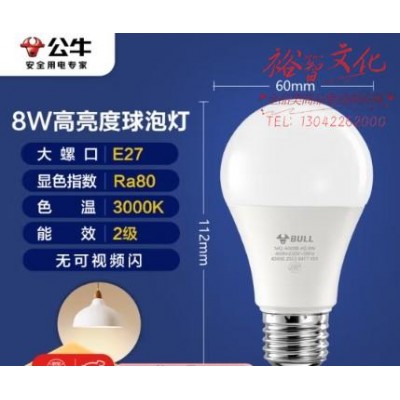 公牛(BULL)LED灯泡E27大螺口球泡灯高亮度 8W黄光(暖白光)3000KSKU:yzwhyp857430