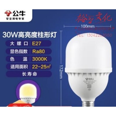 公牛(BULL)LED灯泡高亮柱形灯厂房车间商超食堂 30W球泡暖白光3000KE27螺口SKU:yzwhyp857432