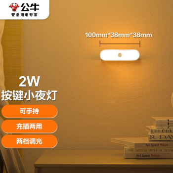 公牛(BULL)LED酷毙灯MC-B003E-BD洗手间厨房条形柔光小夜灯按键款2W2档调光SKU:yzwhyp857469