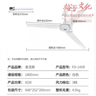 奥克斯(AUX)吊扇/电风扇/1400mm吊扇/吸顶扇/吊顶扇/工业家用大风量风扇/360度旋转风扇FD-140RSKU:yzwhyp857548