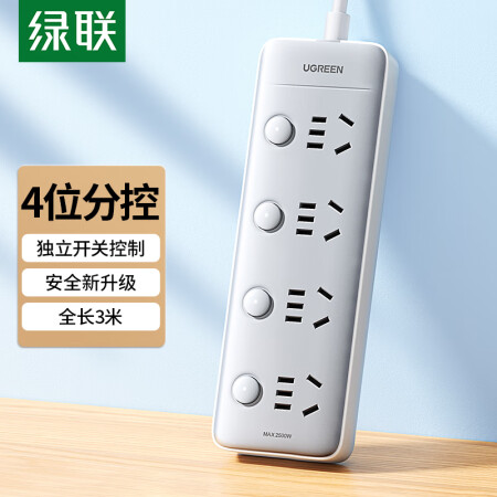 首页 > 建筑建材 > 开关插座 > 绿联(UGREEN)CD323 新国标4位分控插座 插线板/插排/排插/插板/接线板/拖线板宿舍家用独立开关全长3米 15301 SKU:SKU:yzwhyp857557