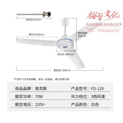 奥克斯(AUX)吊扇/电风扇/1200mm吊扇/吸顶扇/吊顶扇/工业家用大风量吊扇/风扇/360度旋转风扇FD-120SKU:yzwhyp857564