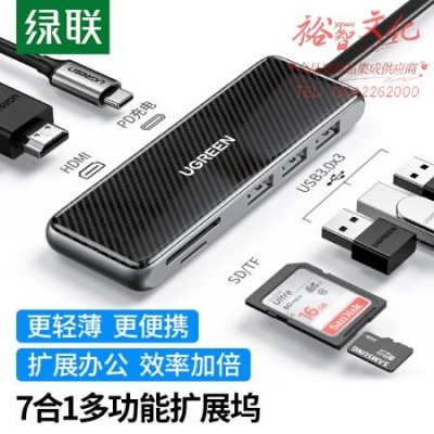 绿联(UGREEN)70550 Type-C扩展坞 USB-C转HDMI转换器4K投屏3.0HUB分线器读卡器电脑拓展坞 七合一SKU:yzwhyp857587