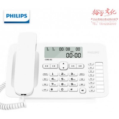 飞利浦(PHILIPS)CORD382电话机座机 免提通话 免电池 来电显示 8组一键拨号 黑名单 白色SKU:yzwhyp857699
