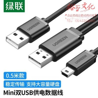 首页 > 信息化设备 > 数据线 > 绿联(UGREEN)10346 USB2.0转Mini USB数据线 移动硬盘相机行车记录仪T型接口电源充电连接线带双供电头0.5米SKU:yzwhyp857797