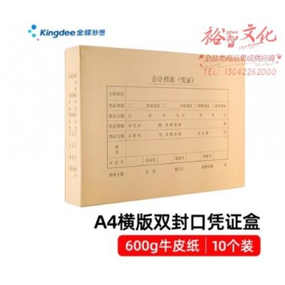 金蝶 kingdee A4凭证盒双封口600牛卡纸财务会计凭证装订档案收纳盒 305*220*50mm 10个/包 PZHA4-HLSKU:yzwhyp858006