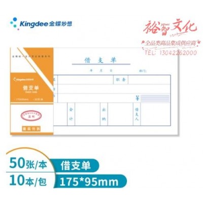 金蝶 kingdee 借支单 通用财务手写单据175*95mm 10本/包 SS17595KSKU:yzwhyp858034