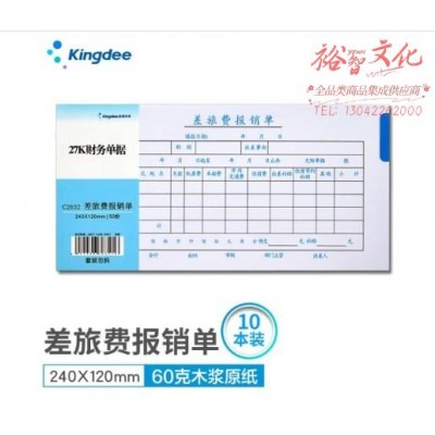 金蝶 kingdee 差旅费报销单 记账凭证通用财务用品 手写报销单据 240*120mm 10本/包 C2032SKU:yzwhyp858072