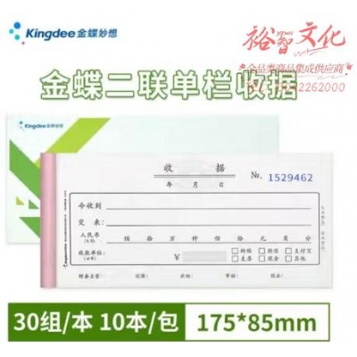首页 > 办公用品 > 文具 > 金蝶 kingdee 二联单栏收据单 无碳复写收款收据 打印手写收据单样本54K 30组/本 10本/包 SJ04ASKU:yzwhyp858099
