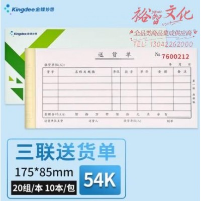 首页 > 办公用品 > 文具 > 金蝶 kingdee 三联送货单销货单清单 无碳复写收款收据 出入库单手写收据单54K 20组/本 10本/包 175*85mm SH06ASKU:yzwhyp858103