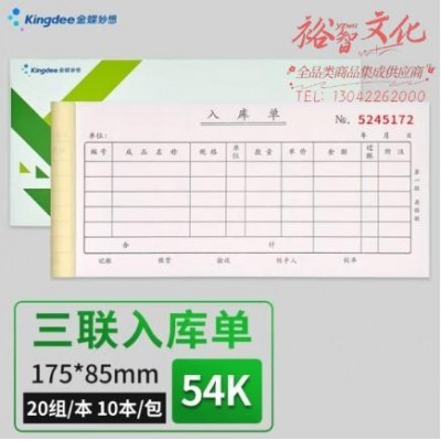 首页 > 办公用品 > 文具 > 金蝶 kingdee 三联入库单据 无碳复写收款收据 打印手写收据单样本54K 20组/本 10本/包 175*85mm RK06ASKU:yzwhyp858105
