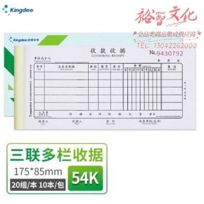 金蝶 kingdee 三联多栏收据本 无碳复写收款收据 打印手写收据单样本54K 20组/本 10本/包 SJ06BSKU:yzwhyp858106